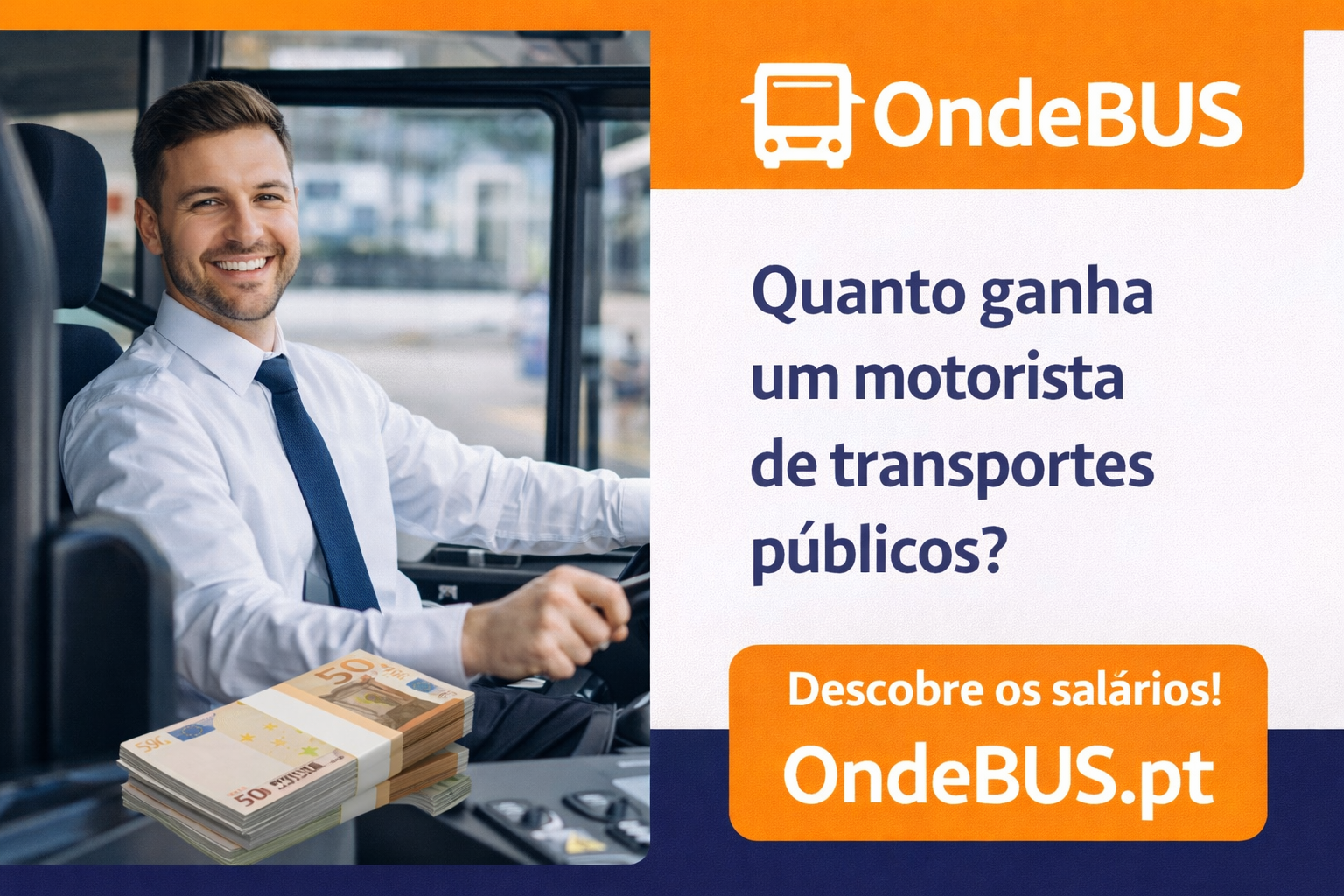 Em Portugal, o salário de um motorista de autocarros situa-se geralmente entre 900€ e 1400€ líquidos por mês, podendo variar consoante a empresa e a experiência profissional.